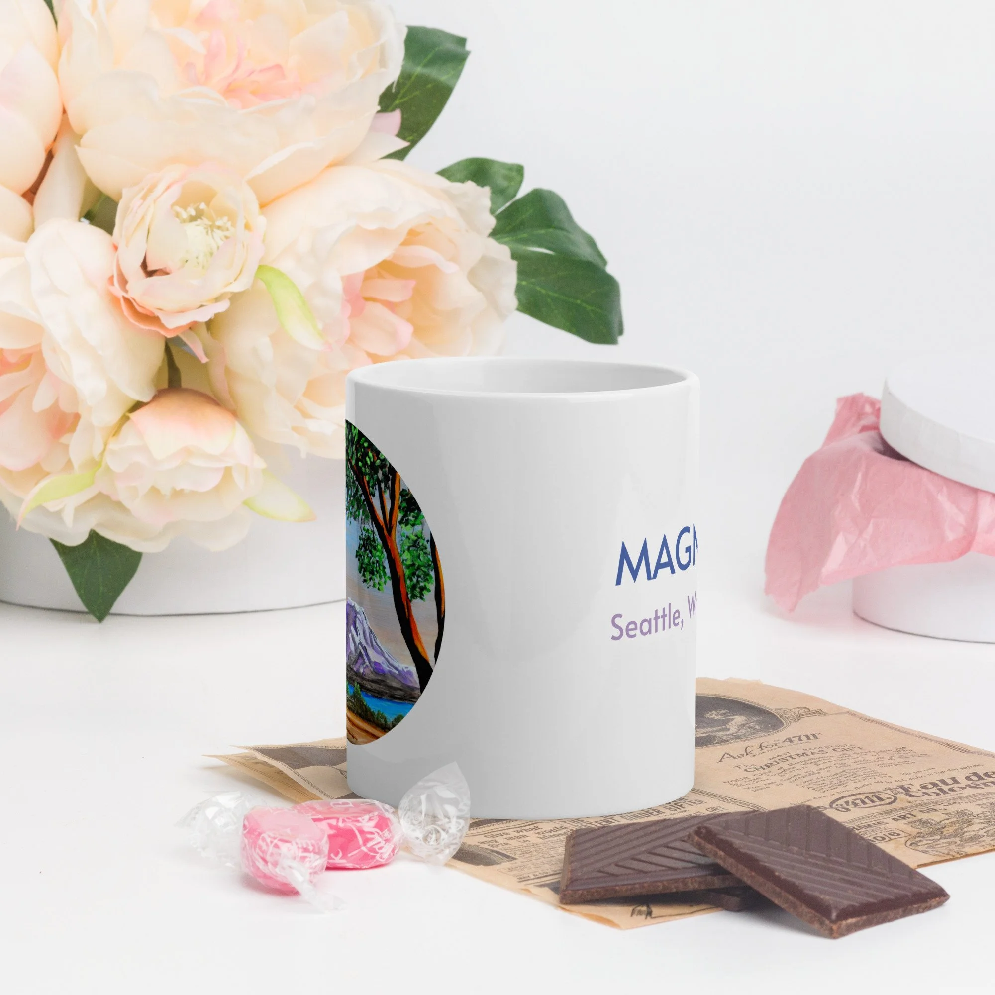 Magnolia Mount Rainier White Mug